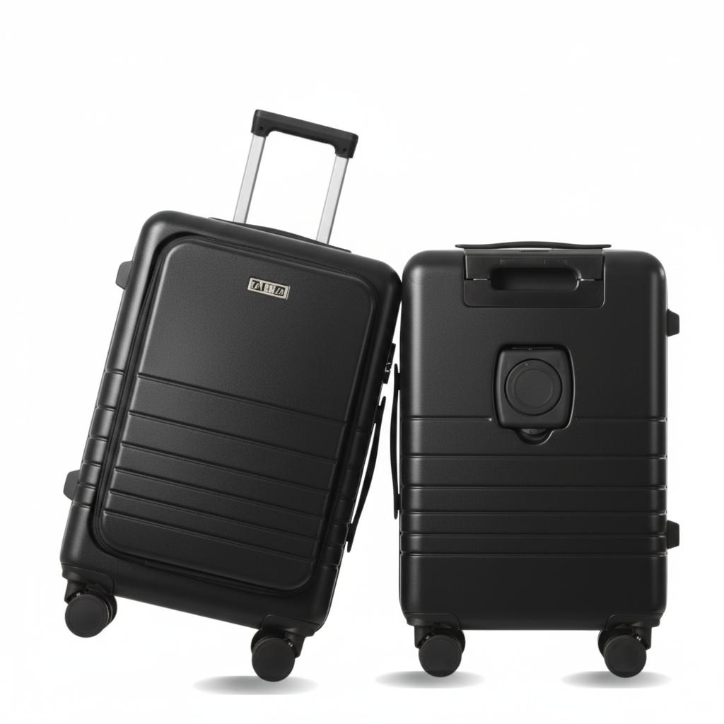 Fagoza Hardside Carry-On Luggage with Front Pocket, Black